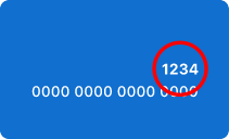 The 4-digit security code is on the front, top-right of the card number.